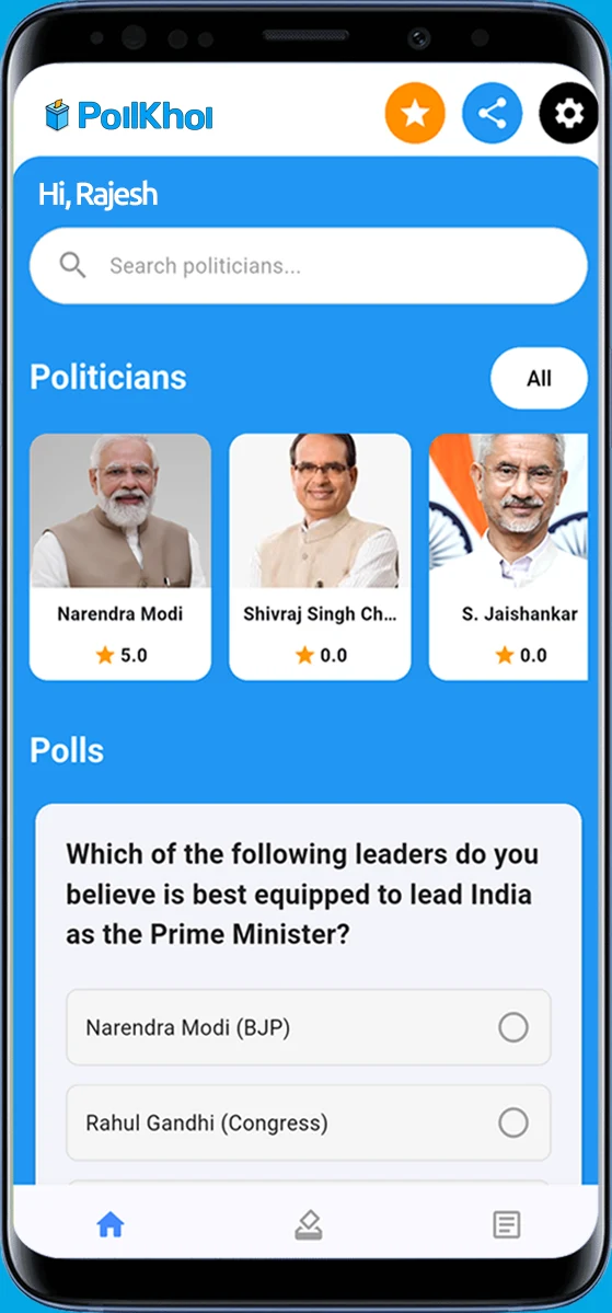 Vote, Rate Politicians & Join India's Most Transparent Polling Platform