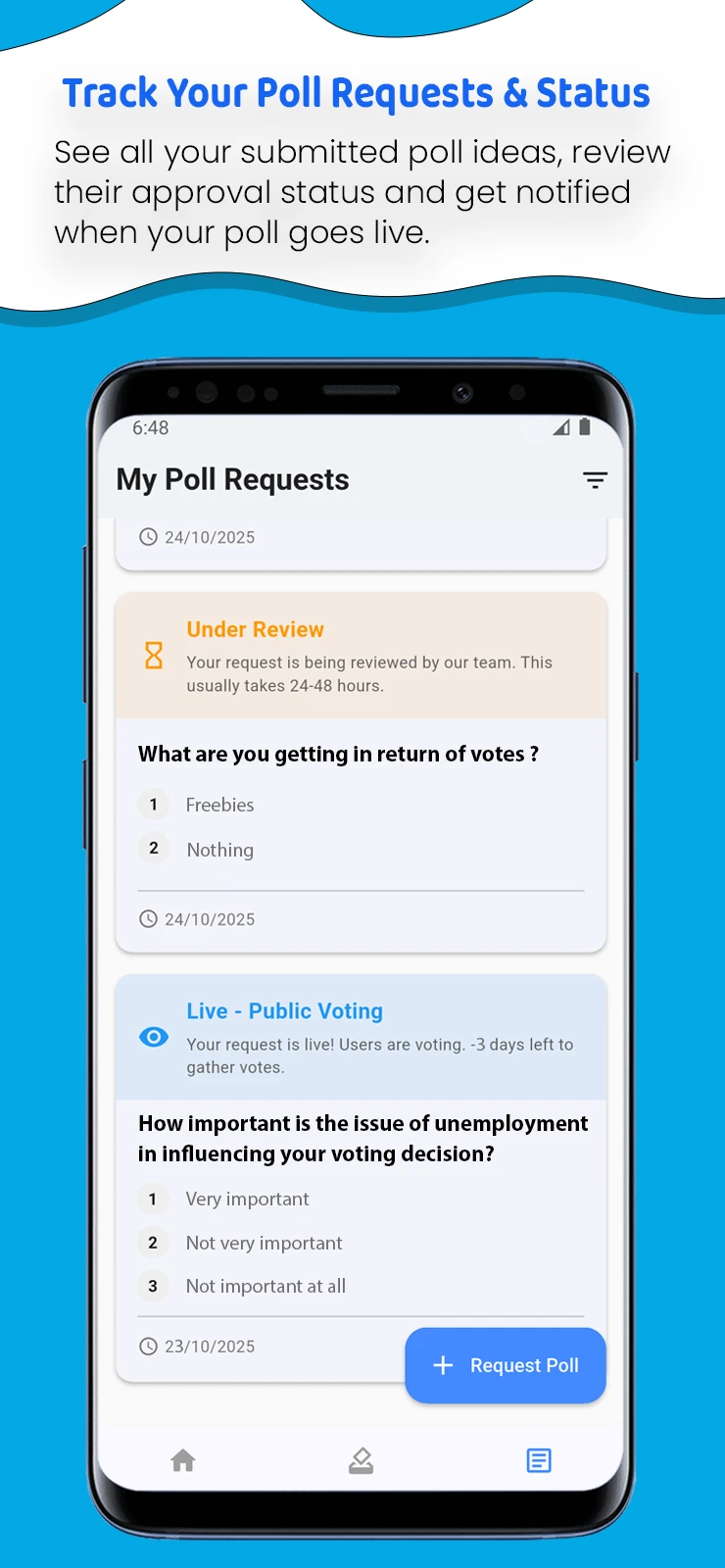 Download PollKhol today and join India's most open political polling platform. Every vote matters, every voice counts.